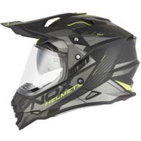 Il casco da enduro NOX N312 è dotato di visiera e parasole integrati e la sua calotta in policarbonato è realizzata con materiali resistenti e durevoli per la massima protezione del pilota.