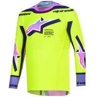 Maglia da motocross Alpinestars Supertech Vista grigio chiaro-giallo fluo-verde-blu-rosa